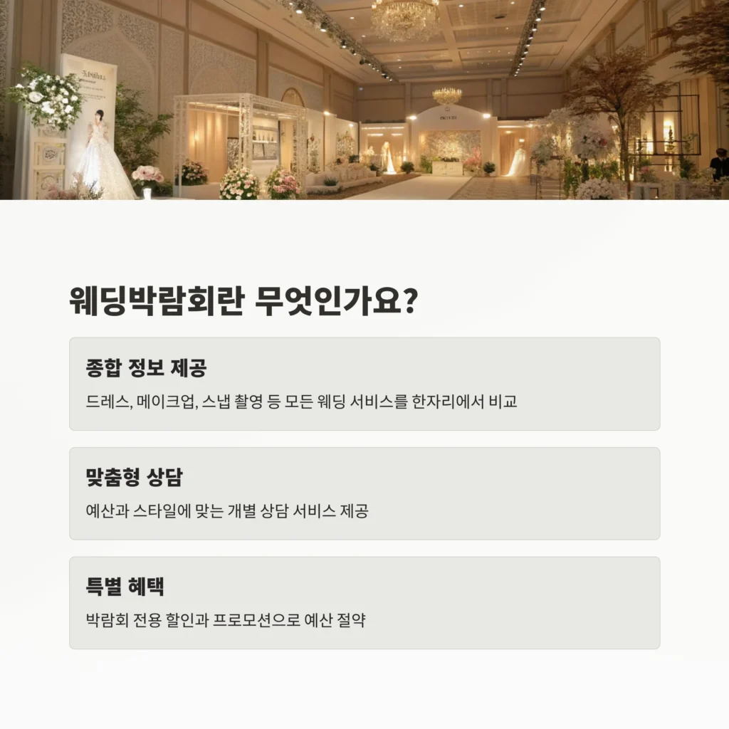 웨딩박람회는 예비 부부에게 맞춤형 상담과 최신 정보를 제공하여 결혼 준비의 효율성을 극대화합니다 — 웨딩박람회 공식 안내(2025).